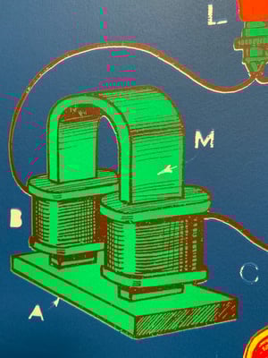 This artwork was inspired by a series of 50's books called "Practical Electrical Engineering" i went through all the books and extracted my favourite graphics from then collated them into a fictitious system.